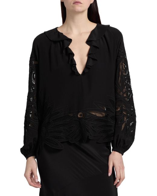 Crafted of fluid silk, this Adonis blouse from Ulla Johnson is defined by voluminous puff sleeves and finished with intricate guipure lace detailing. Ruffled V-neck Long puff sleeves Pulls over 100% silk Lining: 100% polyester Dry clean Imported SIZE & FIT Model measurements: 5'10" tall Model is wearing a US size 4 ABOUT THE BRAND Manhattan-based designer Ulla Johnson credits her archaeologist parents as inspiration for her namesake ready-to-wear label, founded in 1998. Natural fibers, easy fits and meticulous finishes are seen in each collection, which incorporate sweeping silhouettes, and printing and dyeing techniques from around the world. Contemporary Sportswear - Contemporary Lifestyle > Ulla Johnson > Saks Fifth Avenue. Ulla Johnson. Color: Noir. Size: 2.
