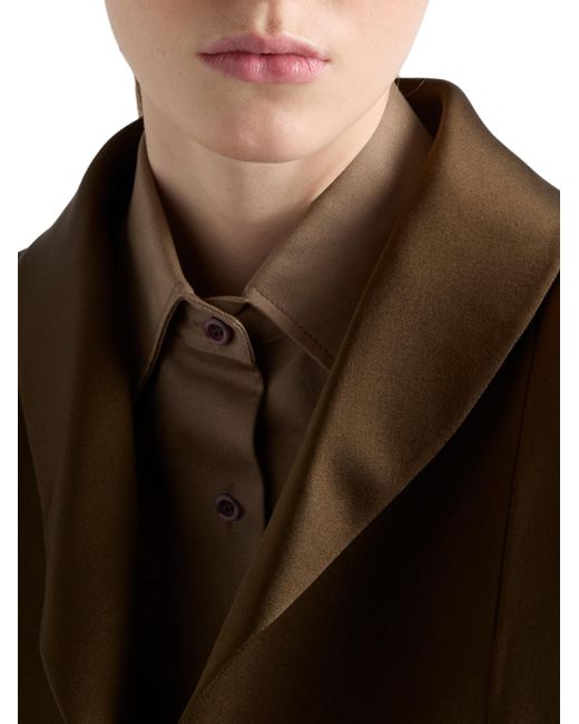 Oversized fit Lined garment Shawl collar No buttons Three-quarter sleeves Inseam pockets 100% Silk Imported. Lsd Rtw - Prada Rtw > Prada > Saks Fifth Avenue. Prada. Color: Green. Size: 0.
