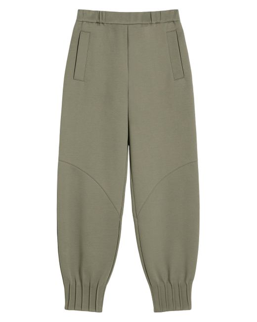 Jogger-style trousers featuring topstitched asymmetrical dart detail on the front and back. Trousers in double-faced technical cotton-blend jersey fabric Straight fit with a slightly dropped waist Rear-elasticated waistband Welt side pockets Elastic inserts at the ankles, complete with ribbing detail 63% cotton, 37% polyester Machine wash cold delicate cycle, do not bleach, do not tumble dry, flat drying in the shade, cool iron, professionally dry clean perchloroethylene - mild process, professional wet cleaning - very mild process, iron with a cloth between, use neutral detergent, turn the articles inside out before washing, to be ironed on reverse Imported. Lsd Rtw - Womens Rtw Lsd Mp > Mm Max Mara > Saks Fifth Avenue. MM Max Mara. Color: Horn Grey Green. Size: XS.