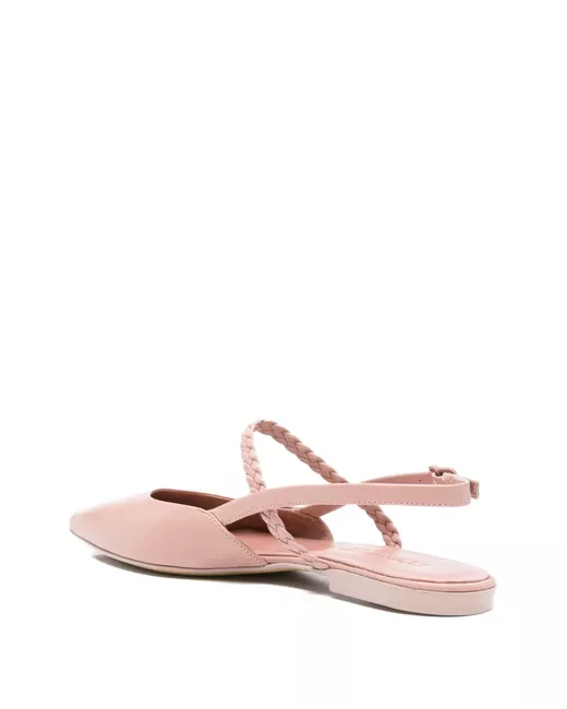 pink pointed toe braided strap slingback strap buckle fastening flat sole