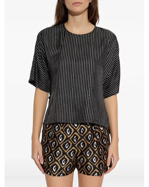 Striped cropped-sleeve top