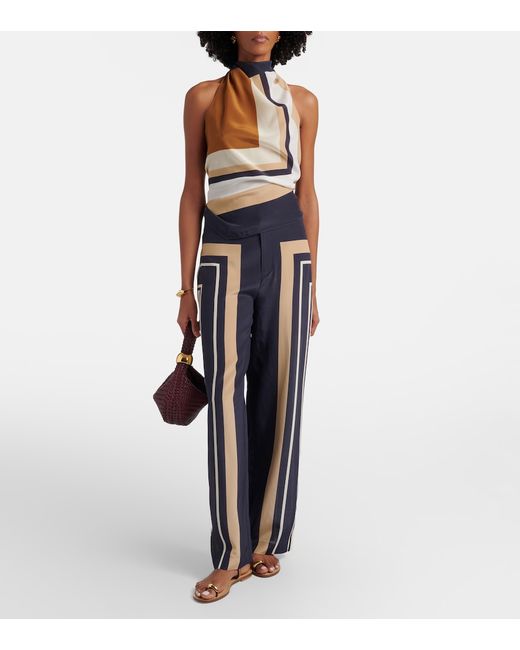 Material: 100% silk. Care instructions: dry clean. Made in China. Designer color name: Hydra Stripe. Self-tie neck. Silk.