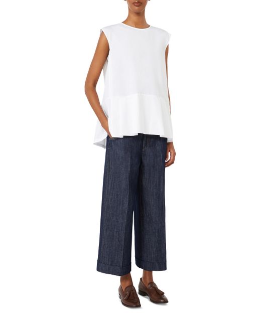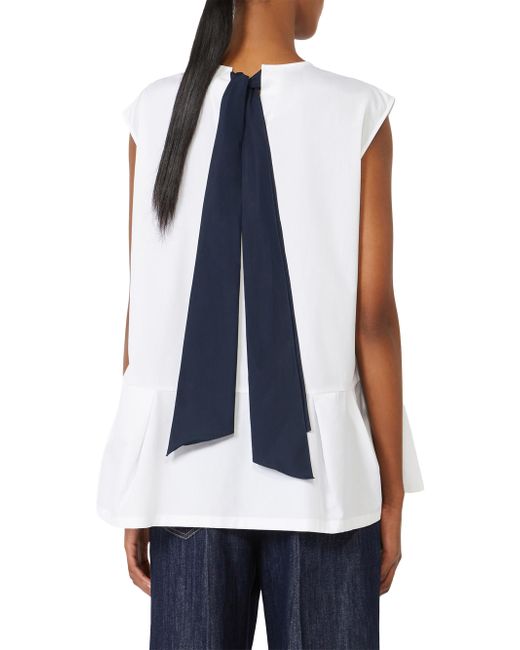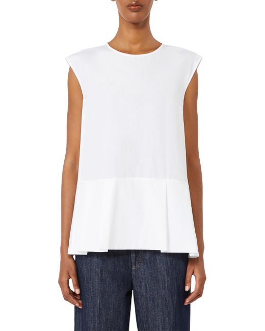 Sleeveless top with flounce detail at the hem. Pure cotton poplin top Flared fit Crew-neck Wide shoulder straps Contrasting tie fastening at the back Unlined model Fabric 100% cotton, lining 100% cotton Machine wash cold delicate cycle, do not bleach, do not tumble dry, line drying in the shade, cool iron, professionally dry clean perchloroethylene - mild process Imported. Lsd Rtw - Womens Rtw Lsd Mp > Max Mara > Saks Fifth Avenue. Max Mara. Color: White. Size: 6.