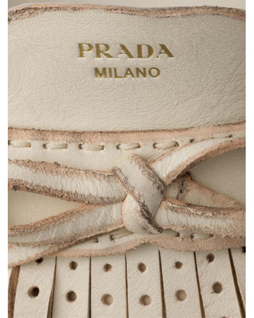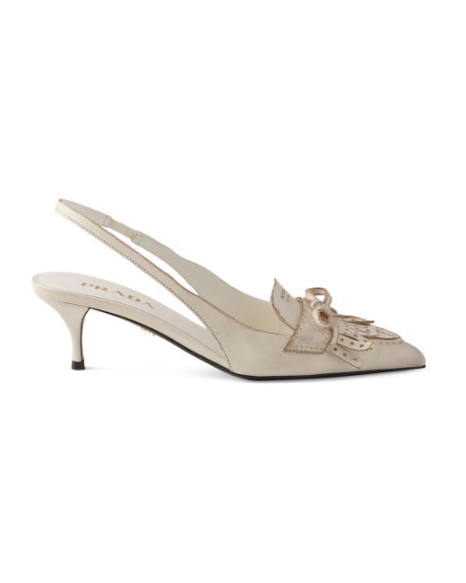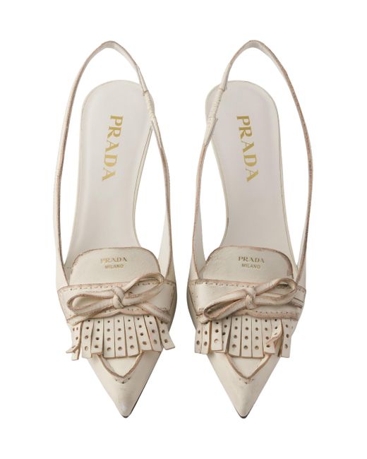 Screen-printed logo Leather and rubber sole with metal lettering logo Leather-covered heel, height 55mm / 2.2'' Imported 100% Calf Leather. Lsd Rtw - Prada Rtw > Prada > Saks Fifth Avenue. Prada. Color: Beige Khaki. Size: 5.5.
