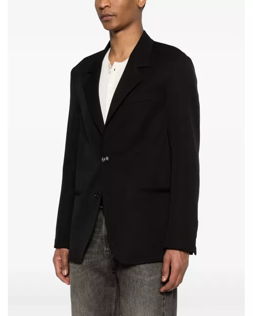 coarse black front pockets button fastening notched lapels long sleeves single-breasted
