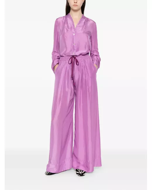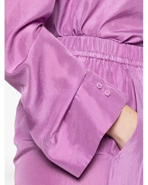 light purple button closure band collar long sleeves buttoned cuffs yoke at the back