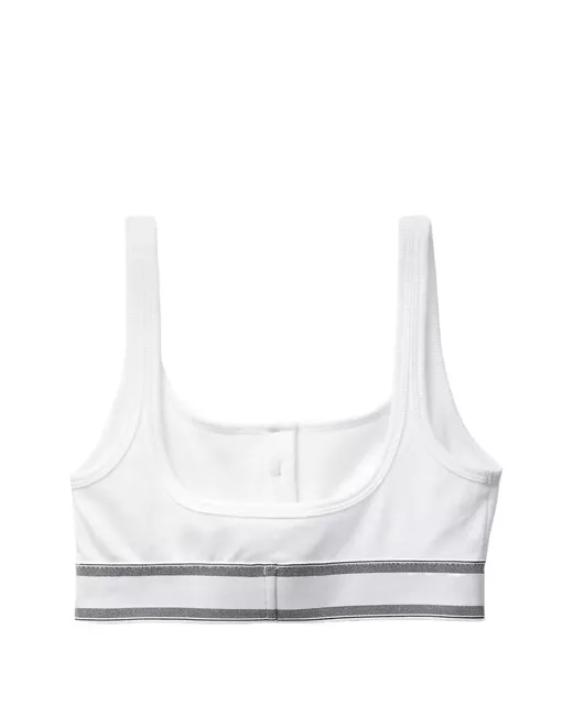 A ribbed-knit stretch cotton scoop bralette featuring a front button closure and an elastic waistband with a jacquard Versace Logo. The loungewear style can be worn with matching briefs. Versace logo motif shoulder straps three-button placket elastic waistband outer composition: 95% cotton, 5% elastane lining: 95% cotton, 5% elastane trim: 91% polyester, 9% elastane The model is 1.77 m tall and wears size 1 IT