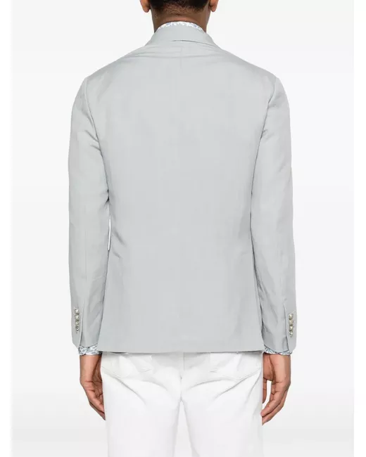 pale blue double-breasted patch pockets peaked lapels long sleeves