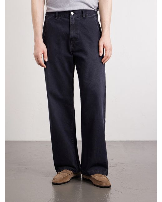 A preference for simplicity informs mfpen’s essentials. These jeans are cut in a relaxed, straight-leg shape from organic non-stretch denim, garment-washed and pre-shrunk to maintain fit. Subtle fading lends character from the outset, while the rigid cloth softens with wear.