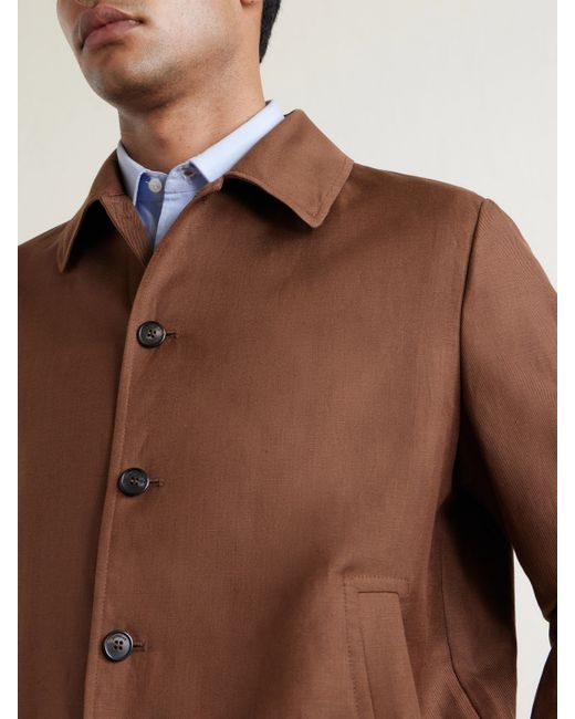 A sleek take on the bomber, this jacket by Incotex is cut from a virgin wool and linen-blend that balances structure with breathability. The cloth offers a crisp yet airy handle, lending the streamlined profile a refined finish suited to warmer days.