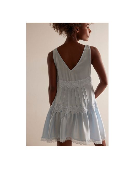 Romance awaits with this floaty mini slip from Intimately, featured in a silky, tiered design with lace trim for a truly delicate detail. **Fit:** Mini length, A-line **Features:** Silky fabrication, babydoll style, V-neckline, tiered design, lace trim **Why We In This Groove Mini Slip by Intimately at Free People in Country Air, Size: Small