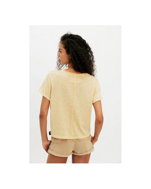Perfect for layering, this short-sleeved tee from We The Free is featured in a boxy cut and a V-neckline for endless outfitting potential. **Fit:** Relaxed, cropped, boxy **Features:** Comfy jersey fabrication, V-neckline, dropped short sleeves with tacked cuff **Why We ❤ It:** Layer over a tank or bralette for the perfect contrasting peek. We The Free Take 2 Tee at Free People in Apricot Gelato, Size: XS