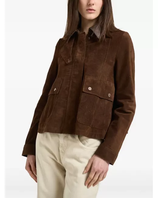 brown front pockets polo collar button fastening zip fastening press-stud fastening