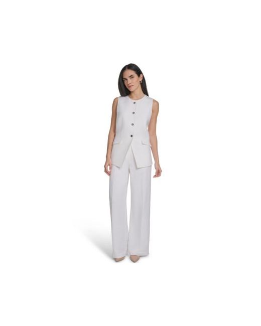Elevate layered tailoring with this Calvin Klein vest jacket, designed with a classic crewneck and two functional front pockets for clean structure. A button-front closure adds polished detail, delivering refined versatility for modern wear.