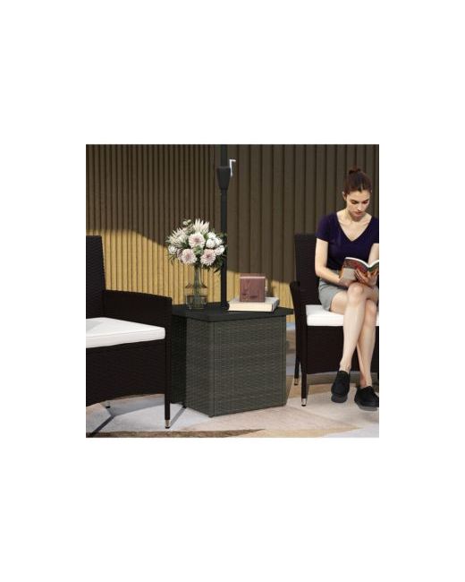 Savor sunny days with the Outsunny patio table with umbrella mount! Designed with a built-in umbrella mounting hole to keep you cool in the shade, this table features a robust Pe rattan frame for lasting durability.