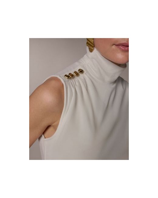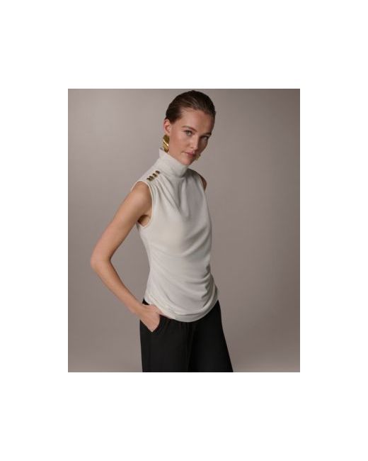 Sophisticated and chic, this Donna Karan New York top features a sleek mock neck and stylish button accents at the shoulder. The sleeveless cut provides a versatile look, great for layering or wearing on its own.