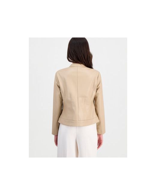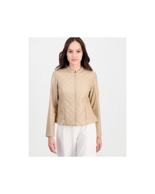 A sleek moto-inspired petite jacket from Anne Klein Essentials features quilted details at the front for a polished take on a staple piece.
