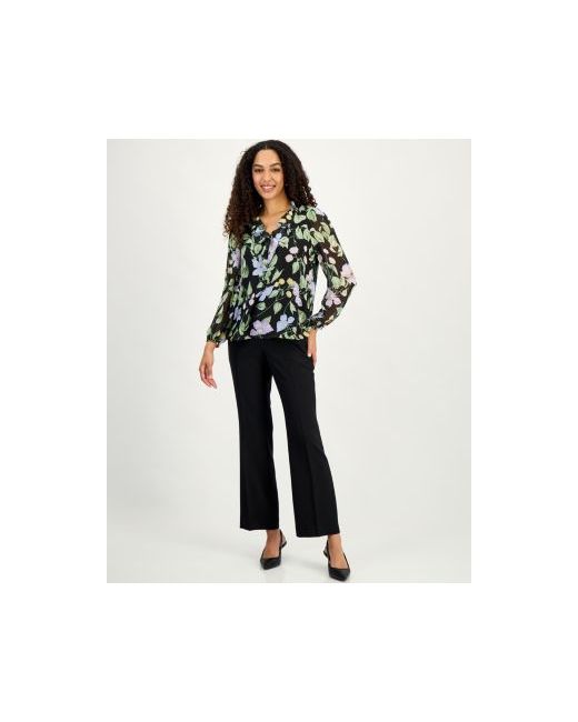 Kasper's blouse combines a striking floral print with delicate ruffle details along the neckline for a feminine and charming look.