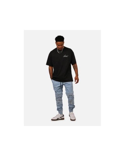 Saint Morta has delved deep into their bag of tricks and produced a pair of pants that will have you covered when you need it most. These Joggers feature an elastic waist with drawcord, dual front and rear pockets, Saint Morta print on the back pocket, tapered fit through the legs, heavily distressed biker style panels above and below the knee.