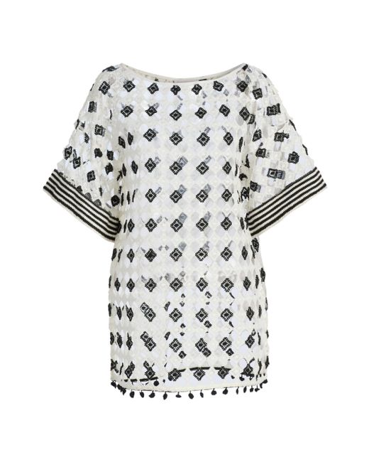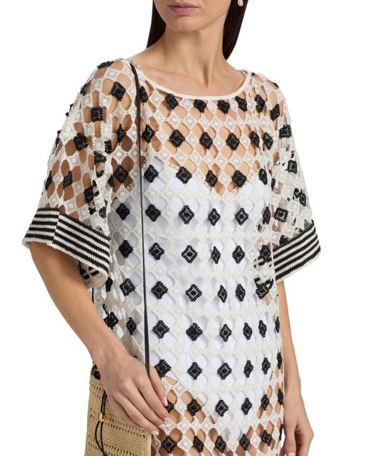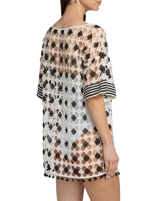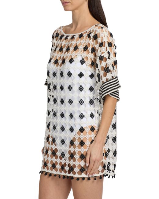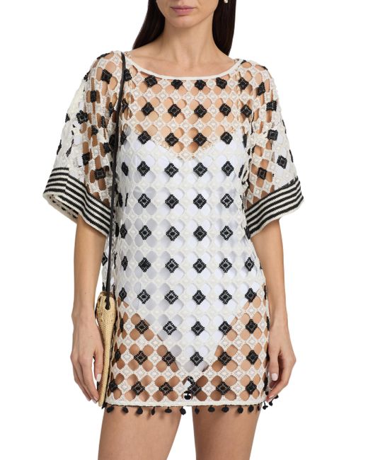 Ramy Brook's Betsy patterned sheer minidress is styled with a U-neck and elbow-length sleeves. U-neck Elbow-length sleeves Pulls over 100% polyester Machine wash Imported SIZE & FIT About 33" from shoulder to hem Model measurements: 5'10" tall Model is wearing a US size Small. Outerwear And Swimwear - Contemporary Swim > Ramy Brook > Saks Fifth Avenue. Ramy Brook. Color: Black. Size: XS.