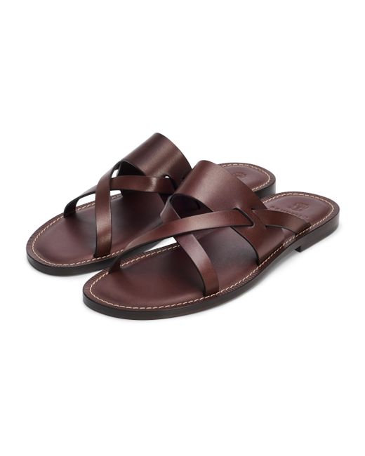 These Brunello Cucinelli strappy sandals are crafted of smooth. A low-profile rubber sole lends added wearability to this pair. Open toe Slips on Leather upper Rubber sole Imported ABOUT THE BRAND Beginning with a focus in masterfully constructed cashmere pieces, Brunello Cucinelli's namesake heritage label quickly grew to be synonymous with fine Italian craftsmanship and casual luxury. Every piece-from knitwear to suiting to accessories-is made in Cucinelli's Solomeo studio, located in a 14th-century Italian village. Men's Shoes - Mens Lux Shoes > Brunello Cucinelli > Saks Fifth Avenue. Brunello Cucinelli. Color: Burnt. Size: 9.
