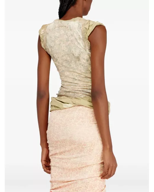 light brown floral print frilled trim sleeveless ribbed texture ruffled hem