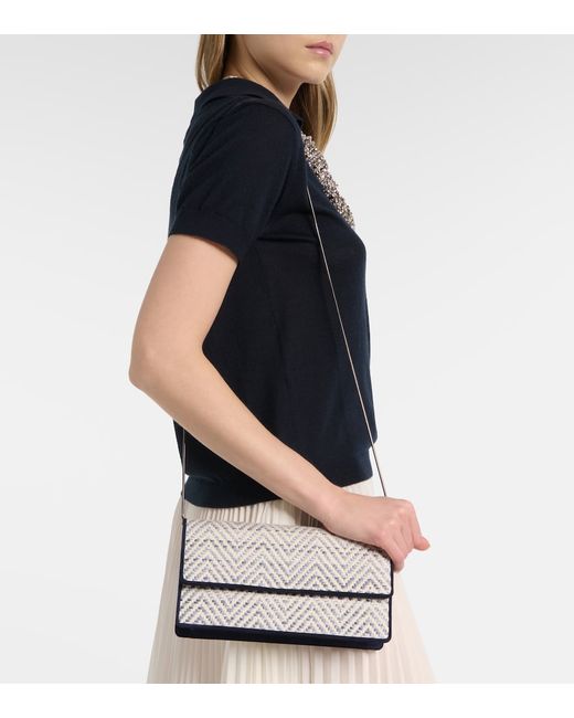 Material: fabric. Lining: fabric. Made in Italy. Designer color name: Ywov(978H)/Navy(4116) (002). Trim: leather (suede). Detachable chain shoulder strap. Internal details: slot pocket, portable mirror. Closure: magnetic fastening. Includes: box, dust bag.
