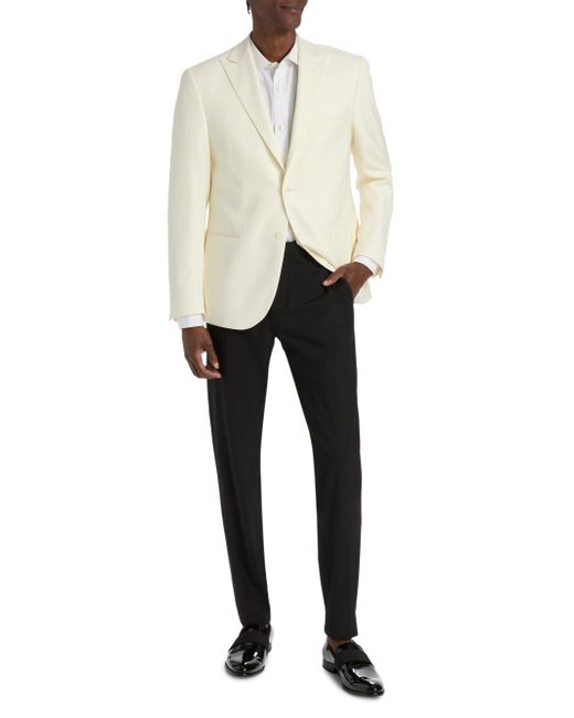 This Corneliani dinner jacket is crafted of virgin wool jacquard. Peak lapels, side besome pockets, and a single-breasted button-front closure adds elevated structure to this style. Peak lapels Long sleeves, stacked button cuffs Chest welt pocket Side besom pockets Button-front closure 100% virgin wool Dry clean Imported SIZE & FIT Model measurements: 6'2" tall, 40"chest, 31" waist Model is wearing a US size 40R. Men Luxury Coll - Mens Corneliani > Corneliani > Saks Fifth Avenue. Corneliani. Color: Off White. Size: 38.