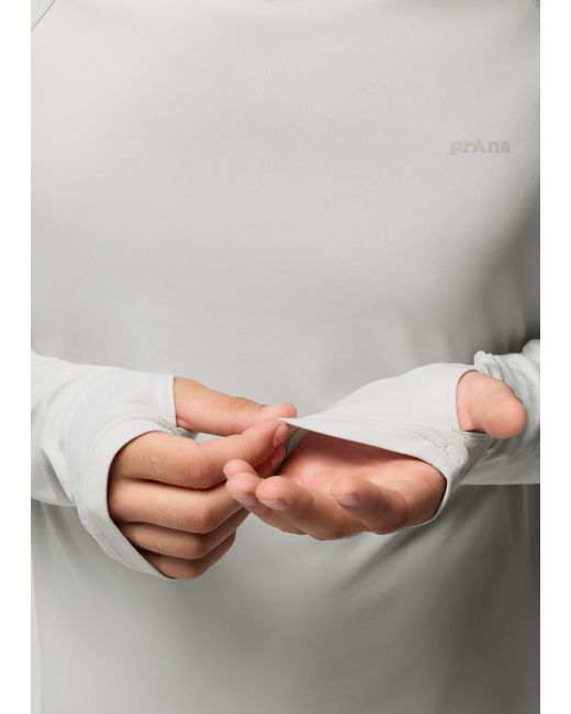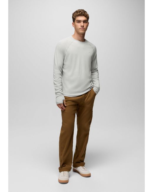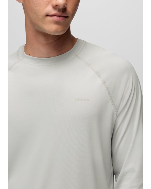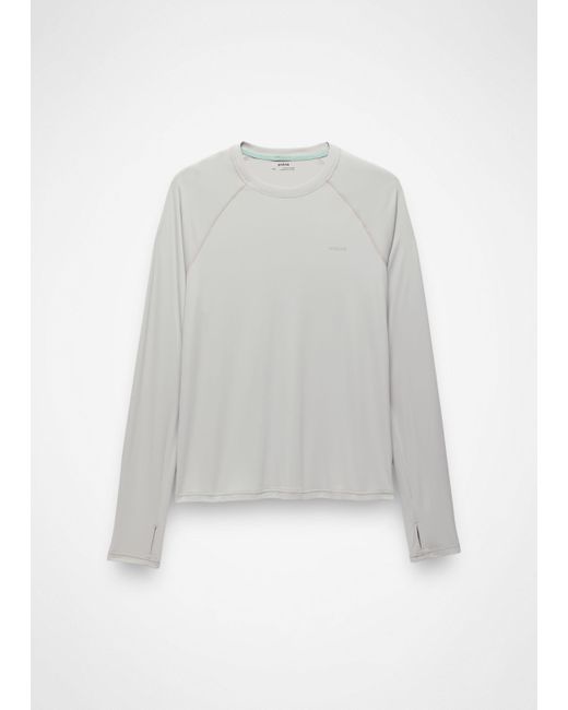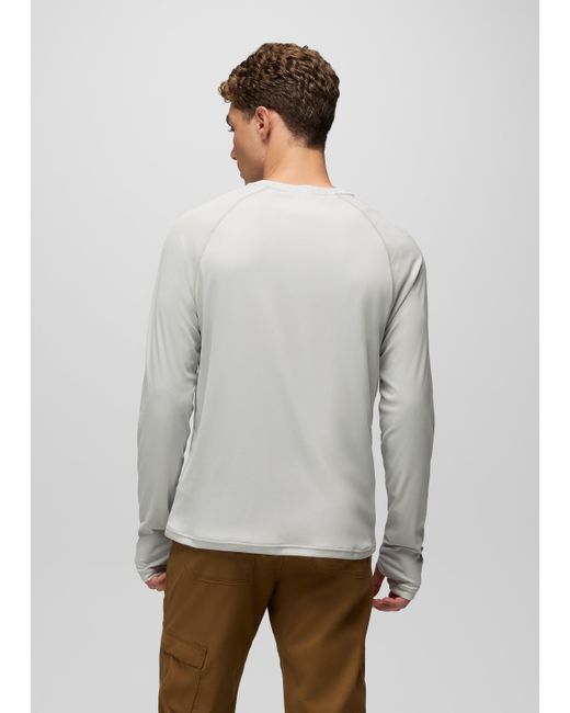 A lightweight long sleeve with UPF 50+ protection for extended time outdoors. No matter how long you're planning to be outdoors, this lightweight long sleeve is made to keep you sun-safe with UPF 50+ protection. For warm days, it's moisture-wicking if you start sweating and for cooler weather, the sleeves have thumb holes to prevent bunching if you wear the long sleeve as a base layer. | Mens prAna Sol Shade Long Sleeve Crew in , Size Large