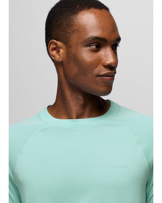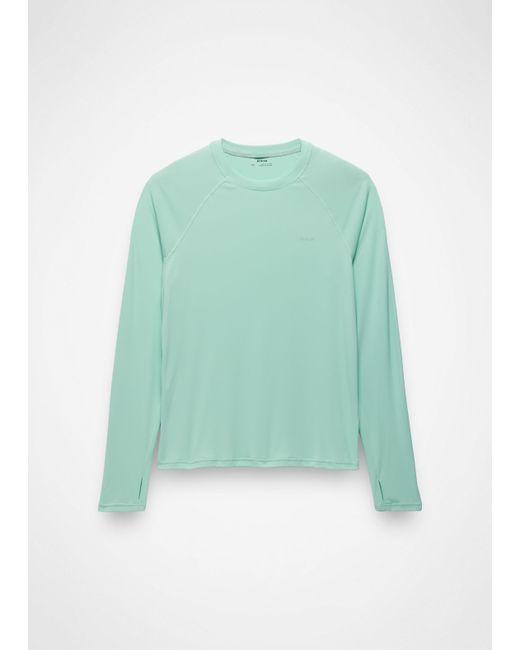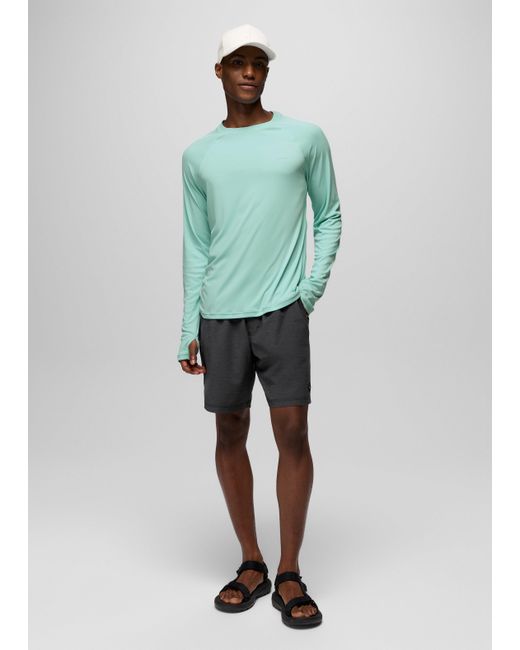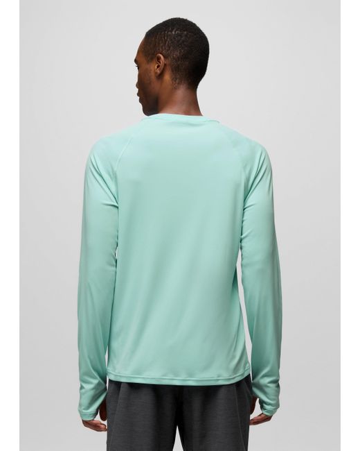 A lightweight long sleeve with UPF 50+ protection for extended time outdoors. No matter how long you're planning to be outdoors, this lightweight long sleeve is made to keep you sun-safe with UPF 50+ protection. For warm days, it's moisture-wicking if you start sweating and for cooler weather, the sleeves have thumb holes to prevent bunching if you wear the long sleeve as a base layer. | Mens prAna Sol Shade Long Sleeve Crew in , Size Large