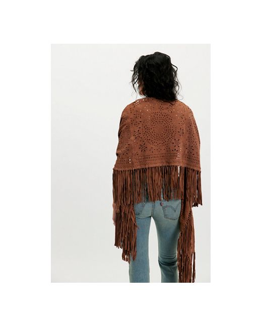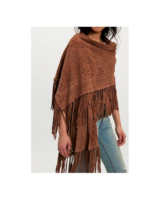 Add the coolest piece to your scarf rotation with this wrap style featured in a soft suede fabrication with intricate cutout detailing and flowing fringe for a relaxed, bohemian feel. * Soft suede fabrication * Decorative laser-cut pattern throughout * Long fringe trim at bottom * Versatile wrap silhouette for multiple styling options Suede Cut Out Wrapable Scarf by Understated Leather at Free People in Brown