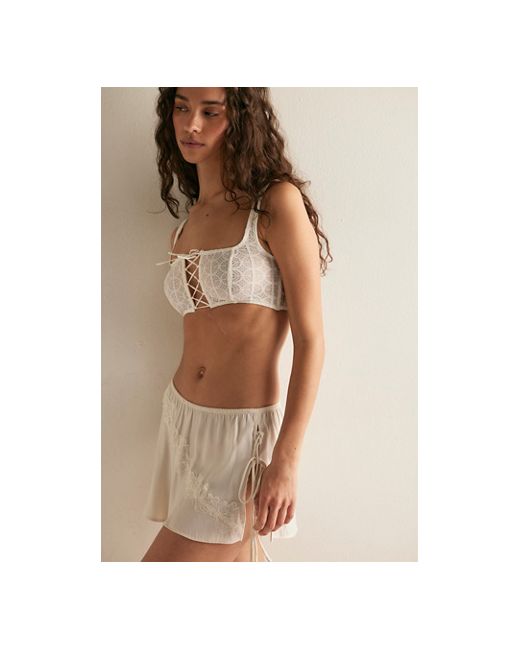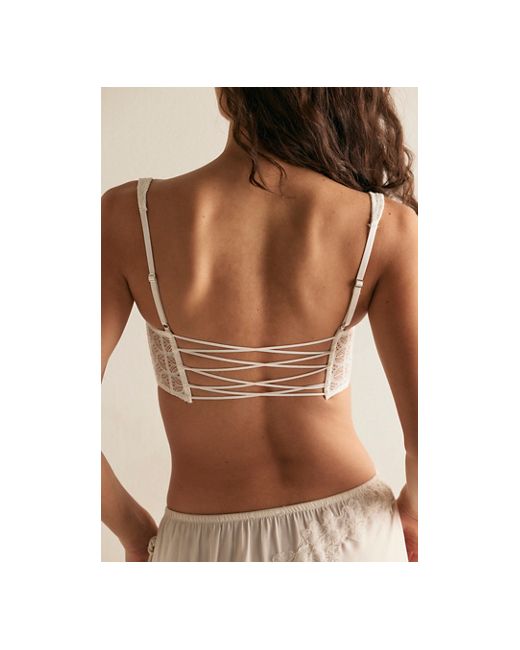 Inspired by our favorite vintage corset styles, this longline bra from Intimately is so charming, featuring a textured, delicately patterned fabrication, a square neck, picot trim, a front lace-up detail, and crisscross straps across the back for a comfortable fit and sultry touch. * Semi-sheer mesh fabrication with added lining at the front * Lace-front longline bra * Vertical boning along front and back * Adjustable shoulder straps Billie Longline Bra by Intimately at Free People in Sugar Swizzle, Size: XS