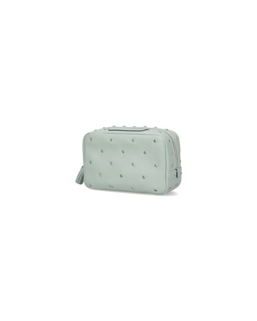 Anya Hindmarch 'Important Things' Pouch In Green Sheepskin, Zip Closure, Zip Zipper, All-Over Applied Crystal Details, Embossed Logo On The Front, Embossed 'Important Things' Lettering, Single Main Inner Compartment. Composition: 100% Sheep Leather