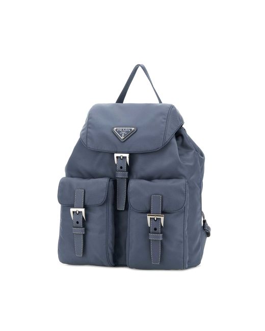 Prada Ladies Backpack. SKU: 1BZ677RV44 F0D57. Color: Aviazione. Size: W: 24 cm H: 24 cm D: 12 cm. Cerulean Blue Re-Nylon Small Backpack From Prada