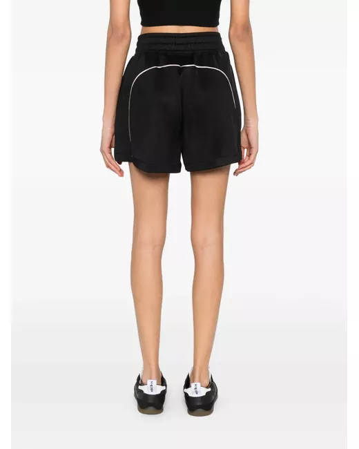 black elasticated waistband side piping logo print