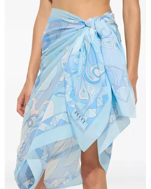 A must-have for summer days, this cotton sarong is the ideal companion for the beach or a sunset stroll. Its size offers a versatile and lightweight fit, perfect for wrapping around the waist, hips, or as a cover-up. The delicate and elegant pale blue Orchidee print makes it an essential accessory for your summer wardrobe. pale blue 100% cotton dimensions: 52x156 cm made in Italy. To offer you a unique Pucci garment, we use an all-over print that makes the product unrepeatable. Therefore, the pattern print may vary from the one displayed in the photo.