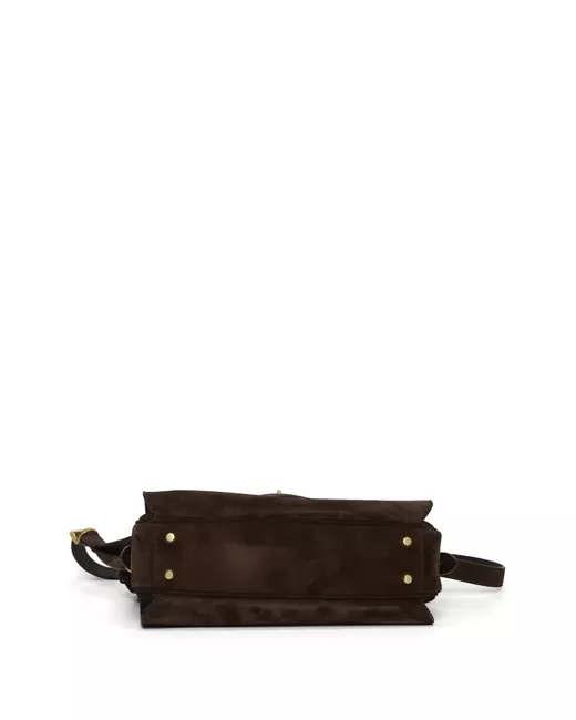 brown calf suede adjustable removable shoulder strap metal feet turn-lock closure internal zip pocket