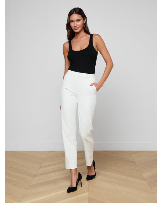 The classic L'AGENCE straight-leg trouser, with a clean waistband and minimalist cut, now in true white. • Stretch suit fabric• High rise• Hidden hook-and-bar closure• Front slant pockets L'AGENCE Rebel Trouser In White