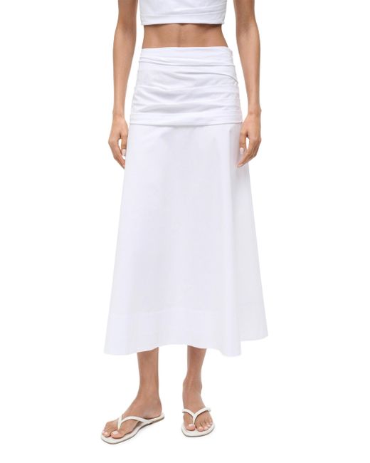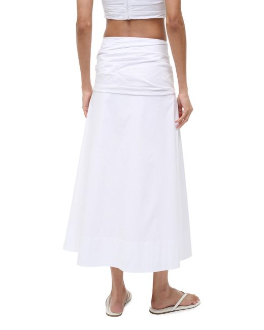 The Sol midi-skirt from Staud is crafted of stretch cotton, featuring a wide pleated waistband. Banded waist Side zip closure 98% cotton/2% spandex Lining: 100% cotton Dry clean Imported SIZE & FIT About 54" long Model measurements: 5'10" tall Model is wearing a US size 4. Contemporary Sportswear - Advanced Contemporary > Staud > Saks Fifth Avenue. Staud. Color: White. Size: 00.