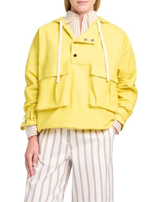 Crafted of waterproof canvas, the Rain Check pullover from TWP features a hood design with an elongated drawstring and two flap pockets on the sides. Hood Long sleeves Side flap pockets Front snap placket 58% cotton/38% polyamide/4% polyurethane Dry clean Made in USA SIZE & FIT About 26" from shoulder to hem Model measurements: 5'10" tall Model is wearing a US size Small ABOUT THE BRAND New York-based label TWP offers modern, effortless takes on go-to wardrobe staples. On a mission to democratize luxury, founder Trish Westcoat Pound, of Haute Hippie fame, focuses on high-quality details and subtle-yet-alluring silhouettes to create elevated, everyday pieces-all made in the U.S. with fabrics sourced from Italy. Contemporary Sportswear - Contemporary Lifestyle > Twp > Saks Fifth Avenue. TWP. Color: Yellow. Size: XS.