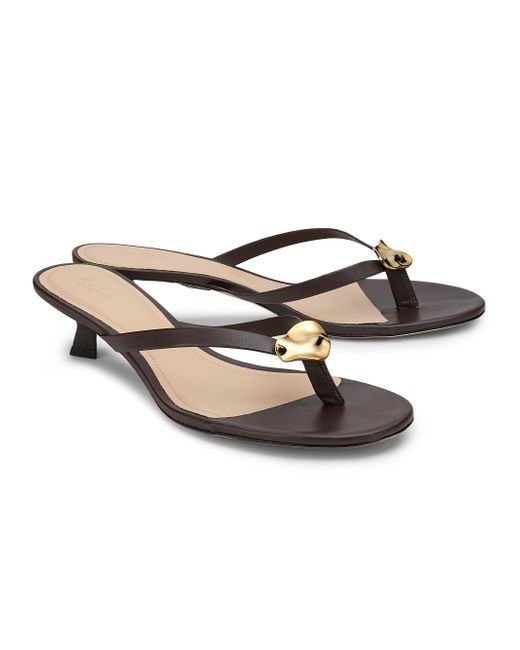 These sandals from 22élevé, crafted of leather, feature goldtone hardware at the open toe and a comfortable 40mm heel. Open toe Slips on Leather upper Leather lining Leather sole Imported SIZE Heel: about 1.5" (40mm). Women's Shoes - Designer Classic W Shoes > 22élevé > Saks Fifth Avenue. 22élevé. Color: Chocolate. Size: 5.5.