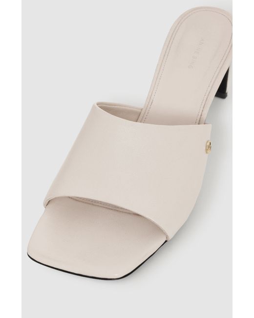 The Jayden Sandals balance clean lines and smooth cow leather, featuring a sharp squared toe and a walkable heel designed to move seamlessly from day to night. Finished with polished gold-tone ANINE BING hardware at the strap, they bring a modern edge to a minimalist design. - Smooth cow leather - Sharp squared toe - Leather lining - Cushioned footbed ANINE BING Jayden Mule Sandals in Bone