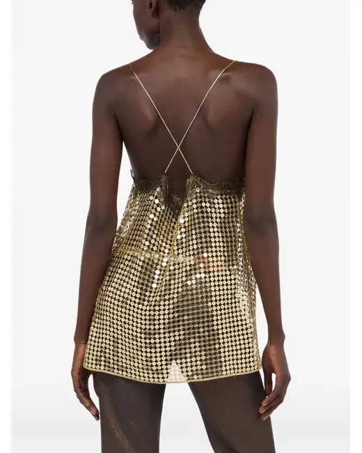 gold-tone sequin embellishment lace trim thin straps low back