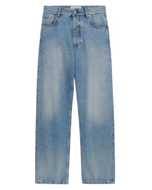 Crafted of a cotton-blend denim, these five-pocket-style jeans from LOEWE are cut for a straight-leg silhouette with fading through the thighs. Five-pocket style Zip fly, button closure 89% cotton/5% polyester/4.5% leather Dry clean Made in Italy SIZE & FIT Model measurements: 6'2" tall, 40" chest, 31" waist Model is wearing a US size 32 ABOUT THE BRAND For over 179 years, LOEWE has been synonymous with classic luxury and expertise in fine leather and tailoring. The Spanish house's latest chapter hones in on redefining the craft through an intellectual-yet-playful approach to fashion thanks to the modern eyes of design duo Jack McCollough and Lazaro Hernandez. The line's bold and vibrant take on the Spanish lifestyle is infused in its effortlessly chic handbags, shoes, ready-to-wear and accessories for women and men. Men Advcd Dsgnr - Mens Advanced Drtw > Loewe > Saks Fifth Avenue. LOEWE. Color: Vintage Blue. Size: 32.