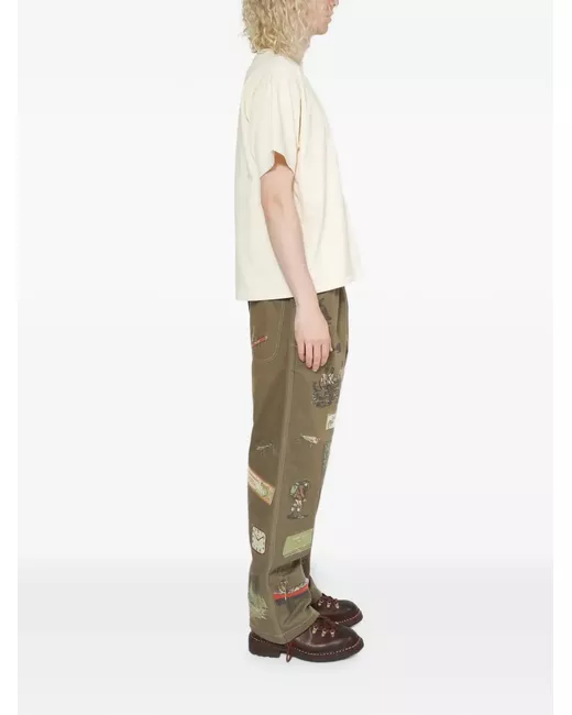 army green original artwork embroidery and patches elasticated waistband back patch pockets straight leg relaxed fit