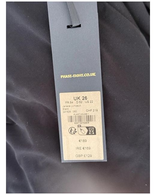 This Phase Eight Black Jumpsuit in size 26 is a stylish and versatile piece for any woman's wardrobe. Made from polyester fabric, this wide-leg jumpsuit features a zip closure and is machine washable for easy care. The classic black colour and plus size fit make it perfect for a summer season, and the one-piece design adds a touch of elegance to any outfit. Ideal for both casual and formal occasions, this jumpsuit from the trusted brand Phase Eight is sure to make a statement.