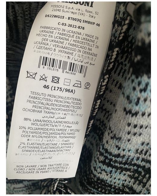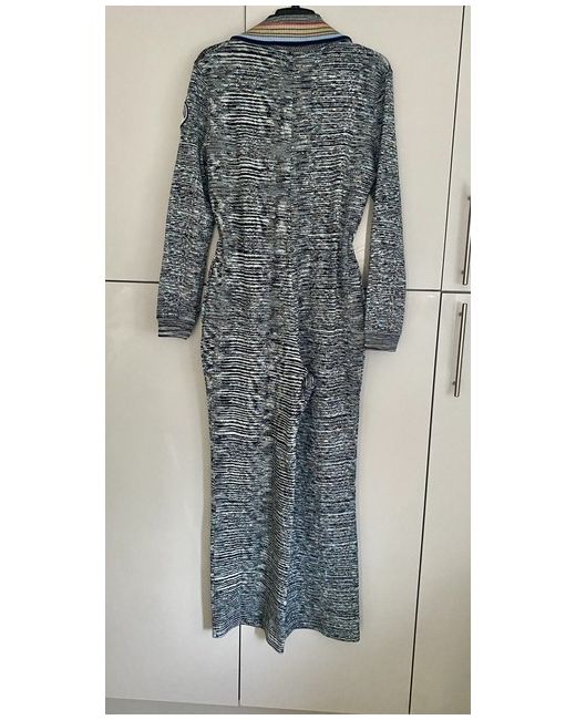Purchased in Italy Authentic new with tags Heavy wool jumpsuit Zip front with string waist lovely badge on arm Missoni classic stripe collar, pockets, wide legs Body colour blueish green Size states 46 which is UK 14 I am size 12/14 and it fits comfortably. Retail £1,300
