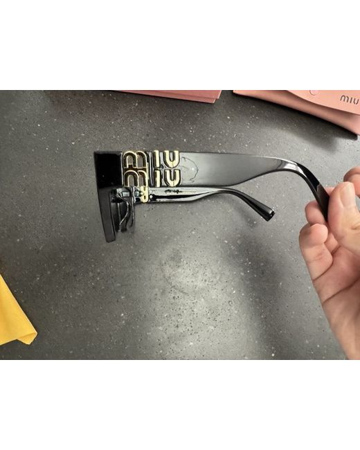 The Miu Miu Women's Sunglasses are a stylish and designer accessory perfect for any fashion-forward woman. These cat-eye sunglasses feature black gradient lenses made from plastic, offering UV400 protection for your eyes. The frames are crafted from black acetate, giving them a sleek and sophisticated look. With the iconic Miu Miu branding, these sunglasses are a must-have for those looking to make a statement with their accessories.