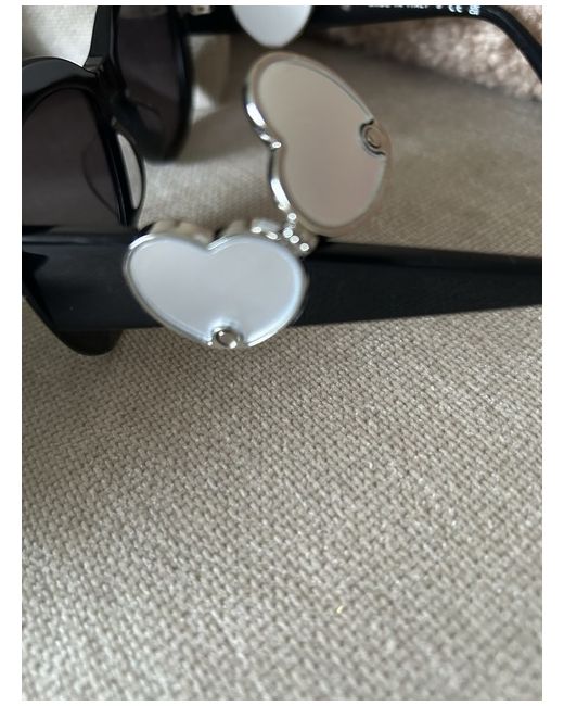 Beautiful brand new black sunglasses with heart logo . Come with box, case and cloth.
