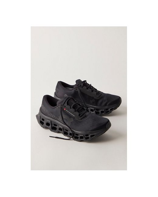 A levelled-up take on On's cult-favorite road-running shoe, these sneakers feature knit uppers engineered for breathability, an enhanced rocker shape for more energetic push-offs, and a triple-layer CloudTec® cushioning system for added responsiveness on the road. * Engineered knit uppers * Low-top, lace-up running shoes * CloudTec® cushioning system * Helion™ foam for comfort and energy return * Speedboard® for propulsion * Compressed rubber outsole for optimized traction On Cloudmonster 3 Sneakers at Free People in Black/Black, Size: US 7